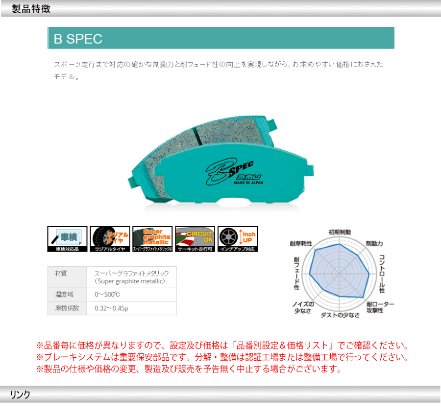 ▲プロジェクトμ▲ ▲商品ページ▲ ▲車種別適合表▲